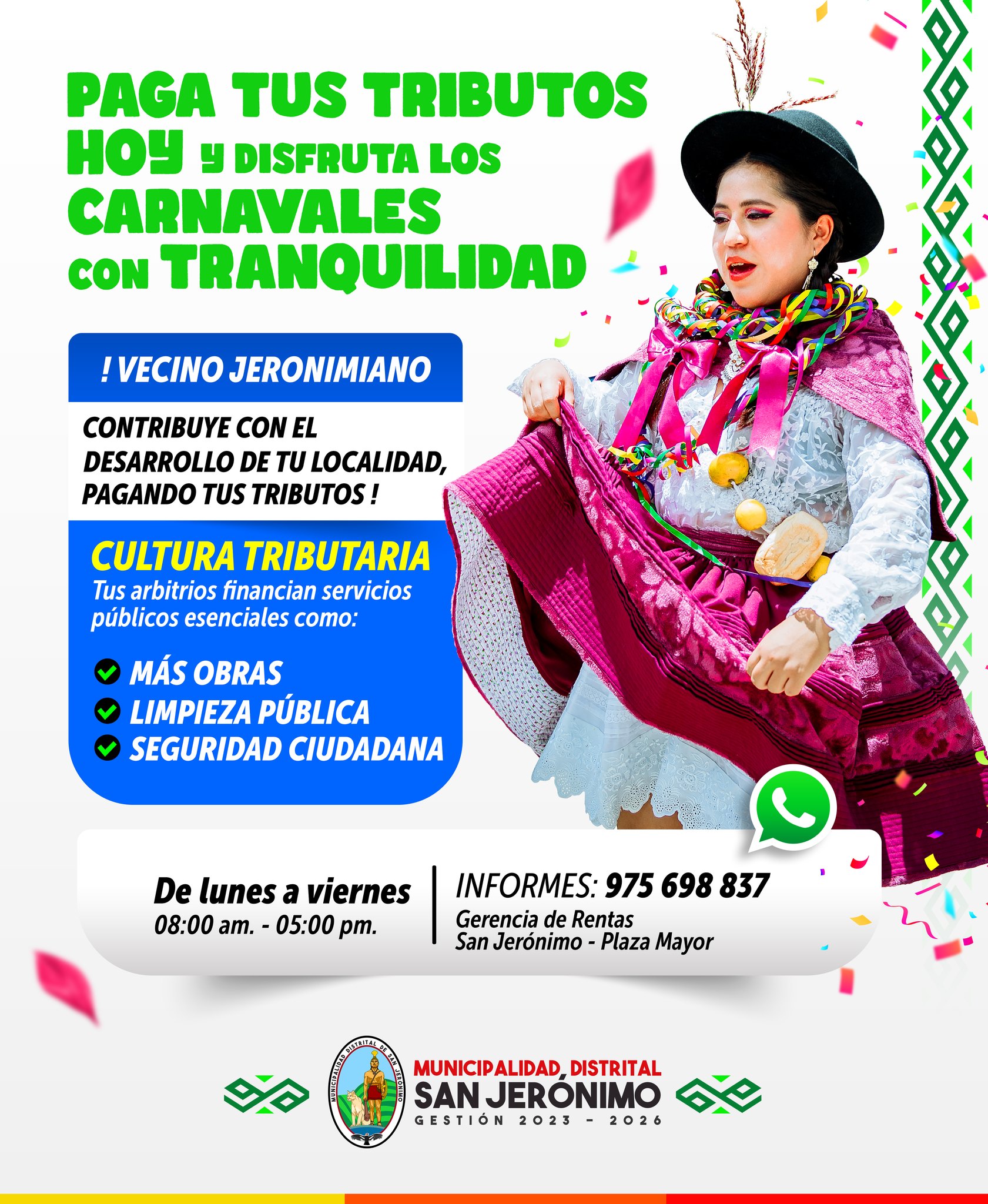 La municipalidad distrital de San Jerónimo invita a la población, autoridades y medios de comunicación al inicio de la obra “Mejoramiento de los servicios operativos…
