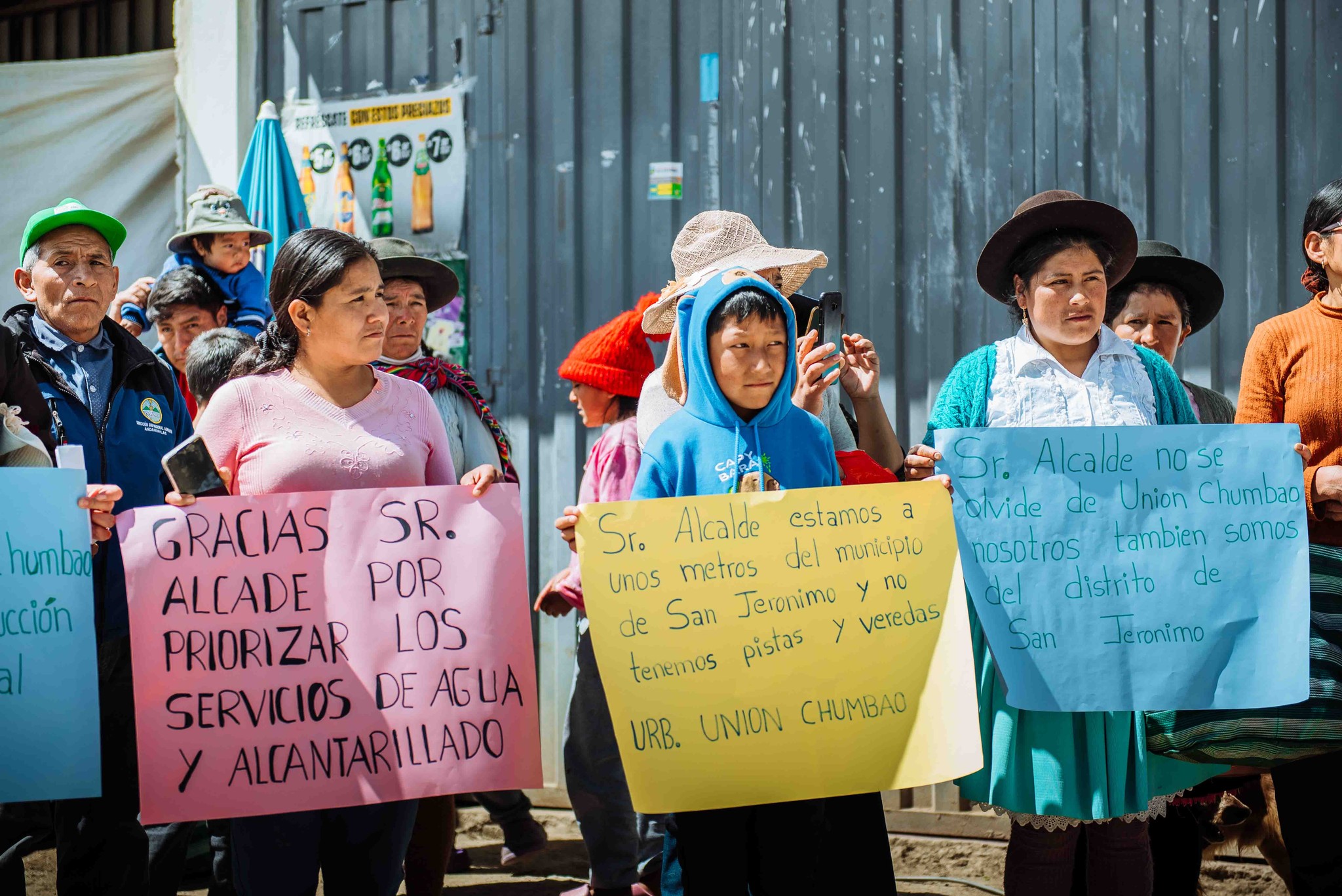 Comprometido con el cierre de brechas y el desarrollo equitativo del distrito, el alcalde de San Jerónimo, Sabino Portillo, acompañado por los regidores del concejo municipal, dio inicio a la segunda etapa del proyecto de mejoramiento del servicio de agua potable y alcantarillado en la comunidad campesina de Unión Chumbao.